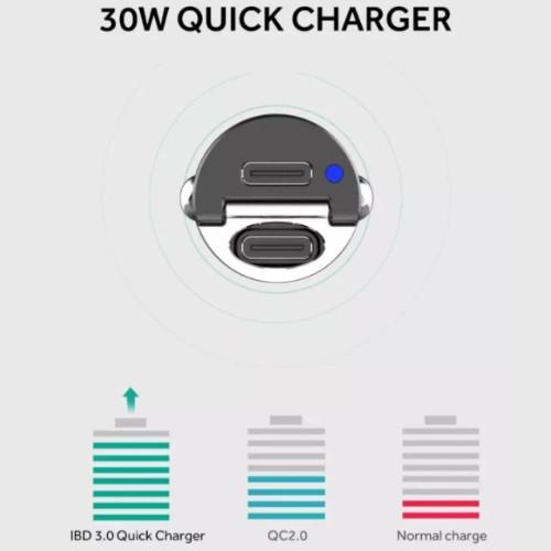 Universal mini Dual PD Car Charger safely and rapidly charges two devices at the same time in your car, on our smallest charger yet!